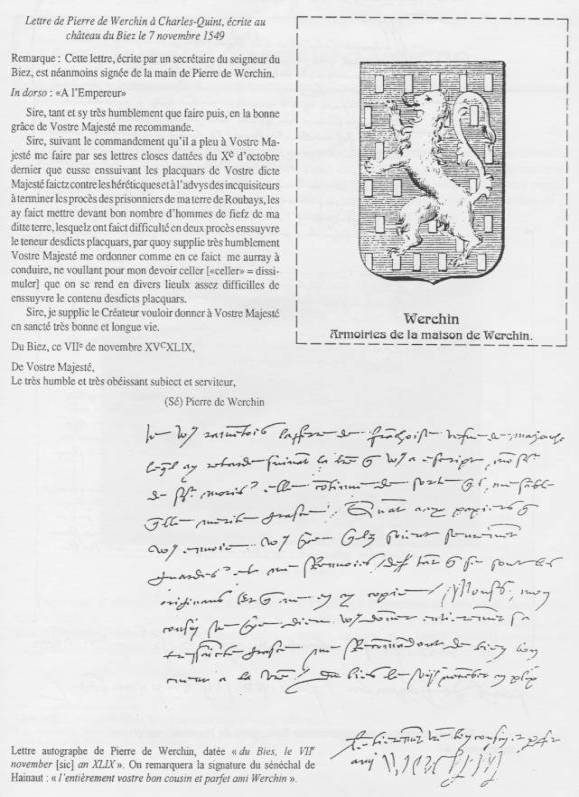 affaire à l'original autographe de la lettre de Pierre de Werchin.