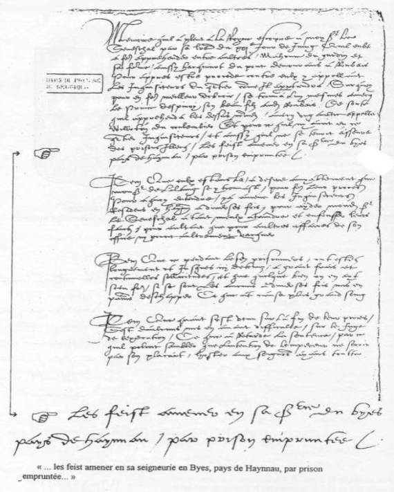 amener en sa seigneurie en Byes, pays de Haynnau, par prison empruntée;